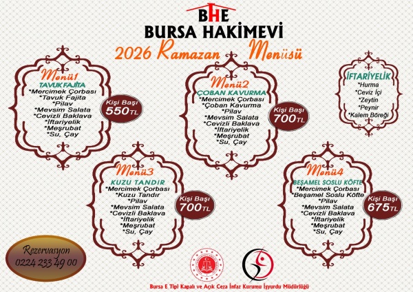 Bursa Hakim Evi 2026 Ramazan Ayı Menüsü